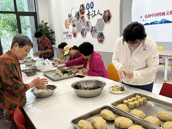 在中秋节主题活动现场,业主们围坐在一起,和面、包馅、压模、烘烤,热情地投入每一个制作环节。待金黄油亮的月饼出炉,纷纷拿起自己参与制作的成品拍照,趁热品尝时,酥软口感与香甜内馅交织,满是中秋的幸福滋味。